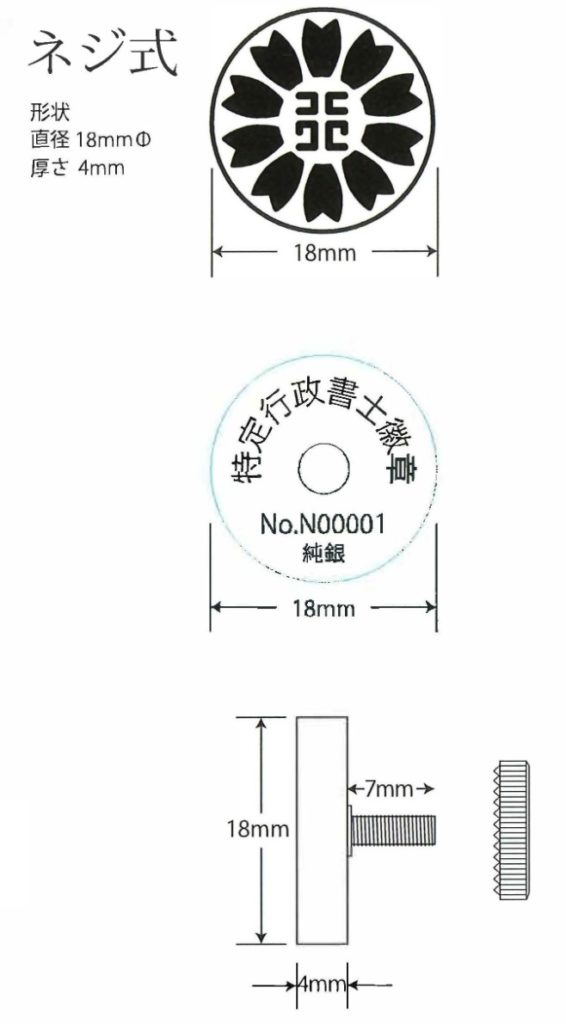 通常の行政書士バッジより直系で2mm、厚みが1mm大きくなります。ネジ式がなく、ピン式のみとなります。